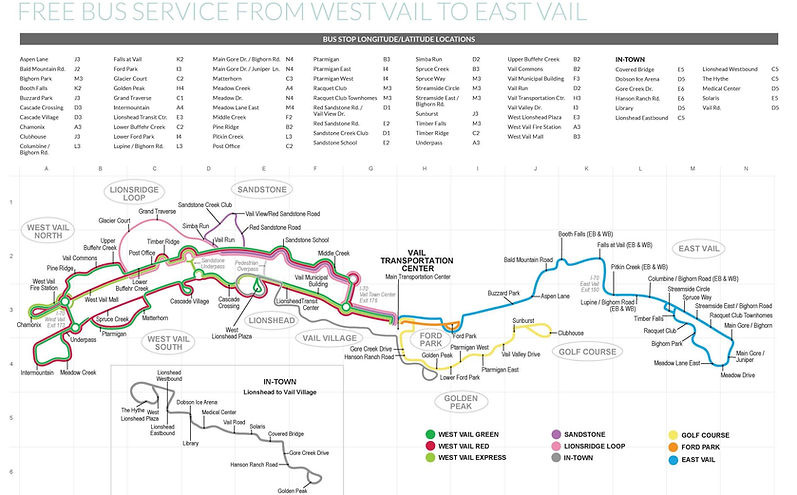 The Town of Vail Transit Department provides free year-round shuttle service throughout Vail.